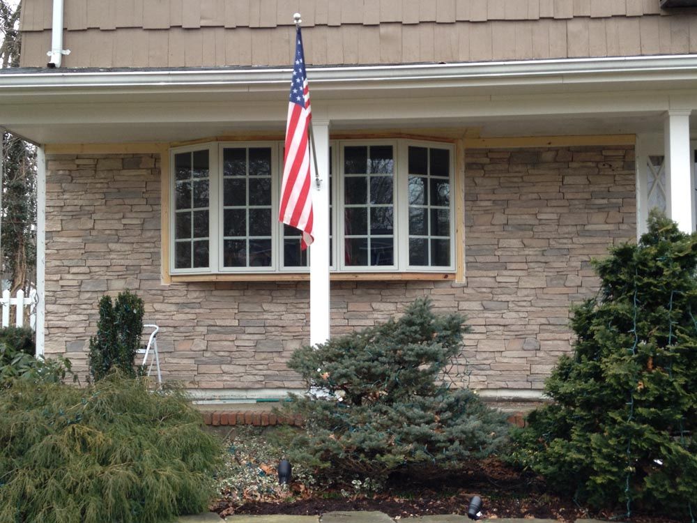 Chimney remodel using Texture Plus Ledgestone – Cream Frost wall panels